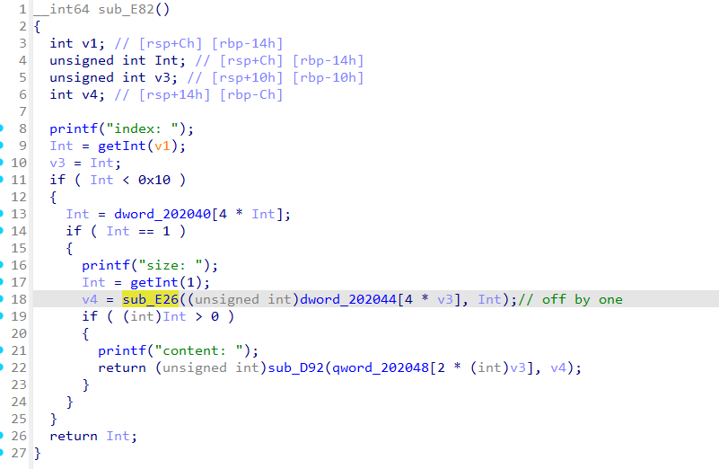 这题是64位libc-2.23的Off by one,溢出点在这里面