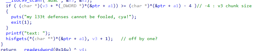 这样检查就绕过了,可以任意写3d到3n前中间这堆堆块的内存,又因为chunk name 前4byte保存的是chunk description的地址,就可以覆写成got表的地址,从而用show得到libc基址,再去用edit修改有指向free的got的堆块,覆写成system,然后调用free就能getshell