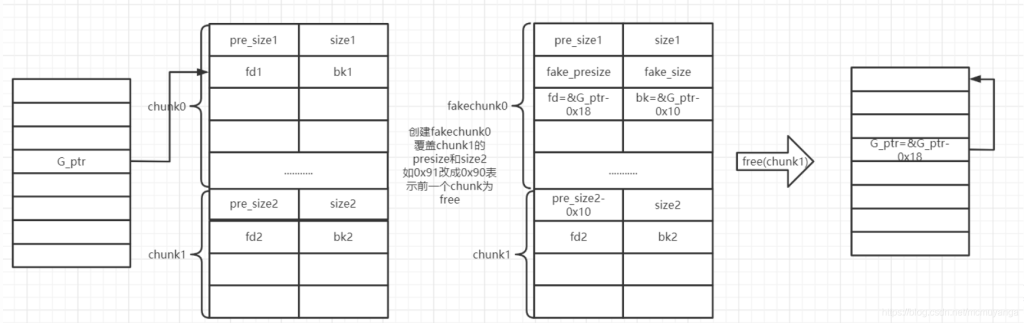 如果实在没有理解,就记得:通过伪造堆块,unlink之后,target_ptr = &target_ptr – 0x18